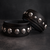 Ces bracelets en cuir pleine fleur, larges de 3 cm, imposent leur caractère avec leurs détails tête de mort finement travaillés.