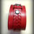 Ici en rouge avec pointes rouge symbolisant un attachement "piquant", leur largeur devant est de 3cm et au niveau de la boucle à griffe 1.5cm.