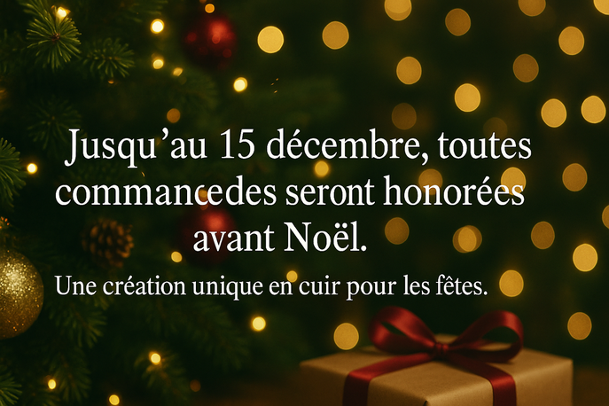 Vous avez la possibilité de choisir la teinte du cuir tannage végétal selon vos goûts, ici en version noire.